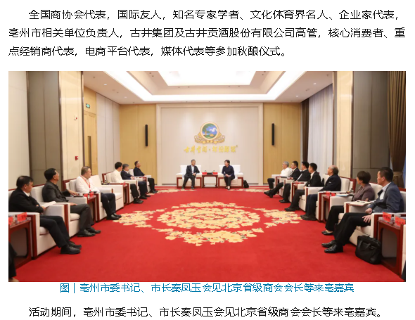 相聚开酿盛会 品味贡酒经典 | 北京省级商会会长、秘书长应邀出席古井集团第十二届秋季开酿仪式